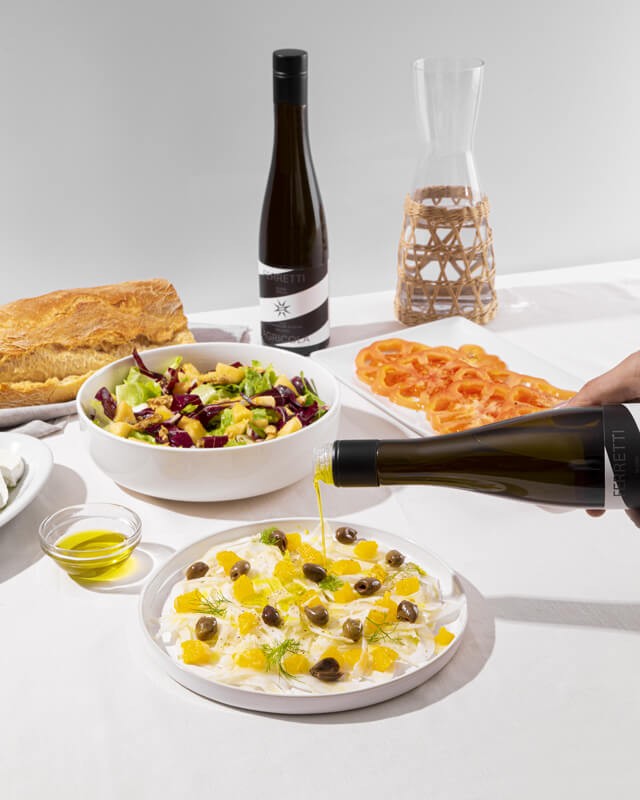 Aggiungi un tocco di autenticità mediterranea alla tua cucina con l'olio extravergine di oliva Ferretti. Scopri il gusto dell'olio che racconta storie di terra e passione, e lasciati trasportare da un'esperienza gastronomica unica.